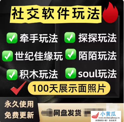 ![]() | 社交软件玩法合集|牵手/探探/世纪佳缘/陌陌/soul/积木全平台 | ¥6.6 | 0件 | 充足 | 购买 |