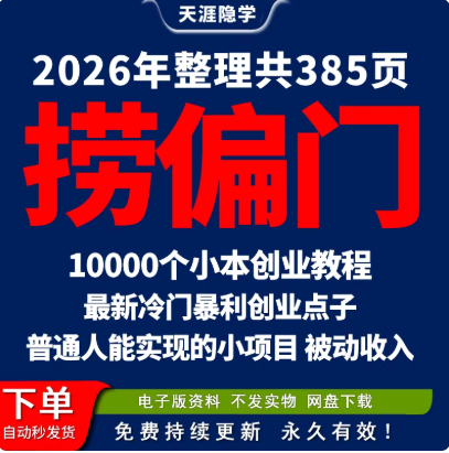 ![]() | 捞偏门2026年全新整理天涯神贴系列捞偏门小本创业冷门蓝海信息差项目偏门生意副业赚钱思路教程电子书合集 | ¥0.01 | 0件 | 充足 | 购买 |